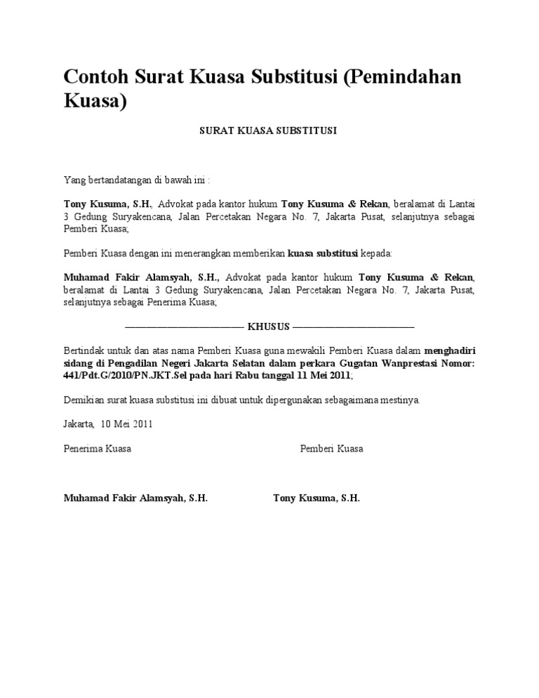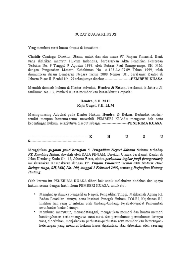 Surat kuasa khusus meliputi kegiatan tertentu yang dialihkan ke penerima kuasa. Apakah surat kuasa bisa dicabut di tengah proses pelaksanaannya? Segar alam abadi ruko edelwis permai blok ab3 no. Banyak contoh surat kuasa yang ada di internet, tetapi tidak semuanya sesuai dengan pedoman yang benar dan tepat. Apabila anda hendak melakukan pindah kuasa dan belum mengerti pembuatannya, contoh dalam bagian ini, surat kuasa akan menjadi lebih jelas mengenai sifat dari surat kuasa tersebut, baik itu berupa surat kuasa umum atau surat kuasa khusus.