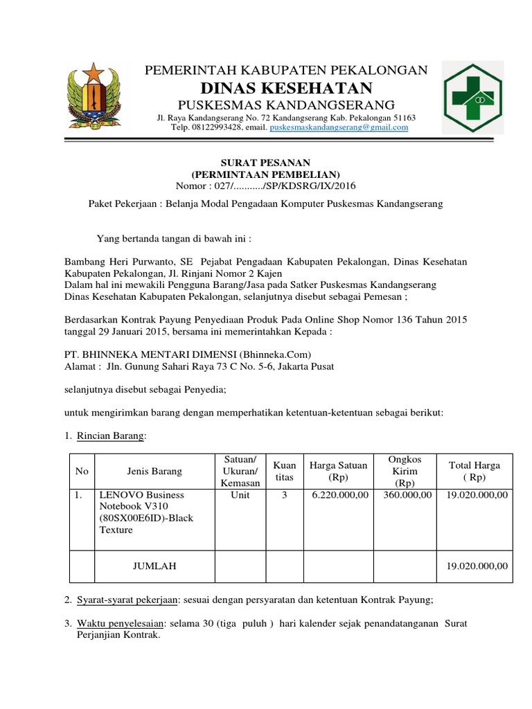 Untuk yang berikutnya ini kita akan mempelajari beberapa contoh untuk surat pesanan barang pemerintah.